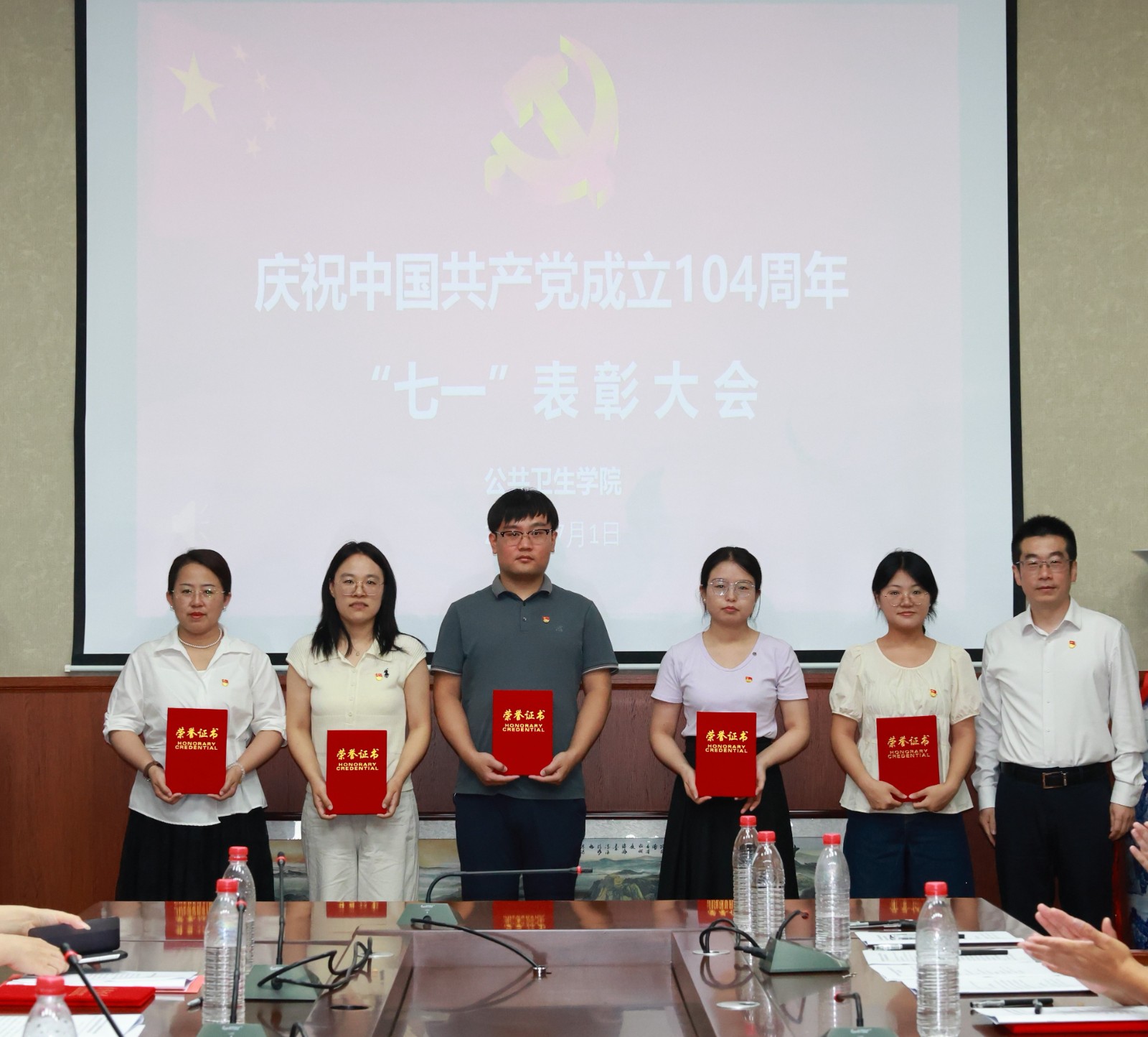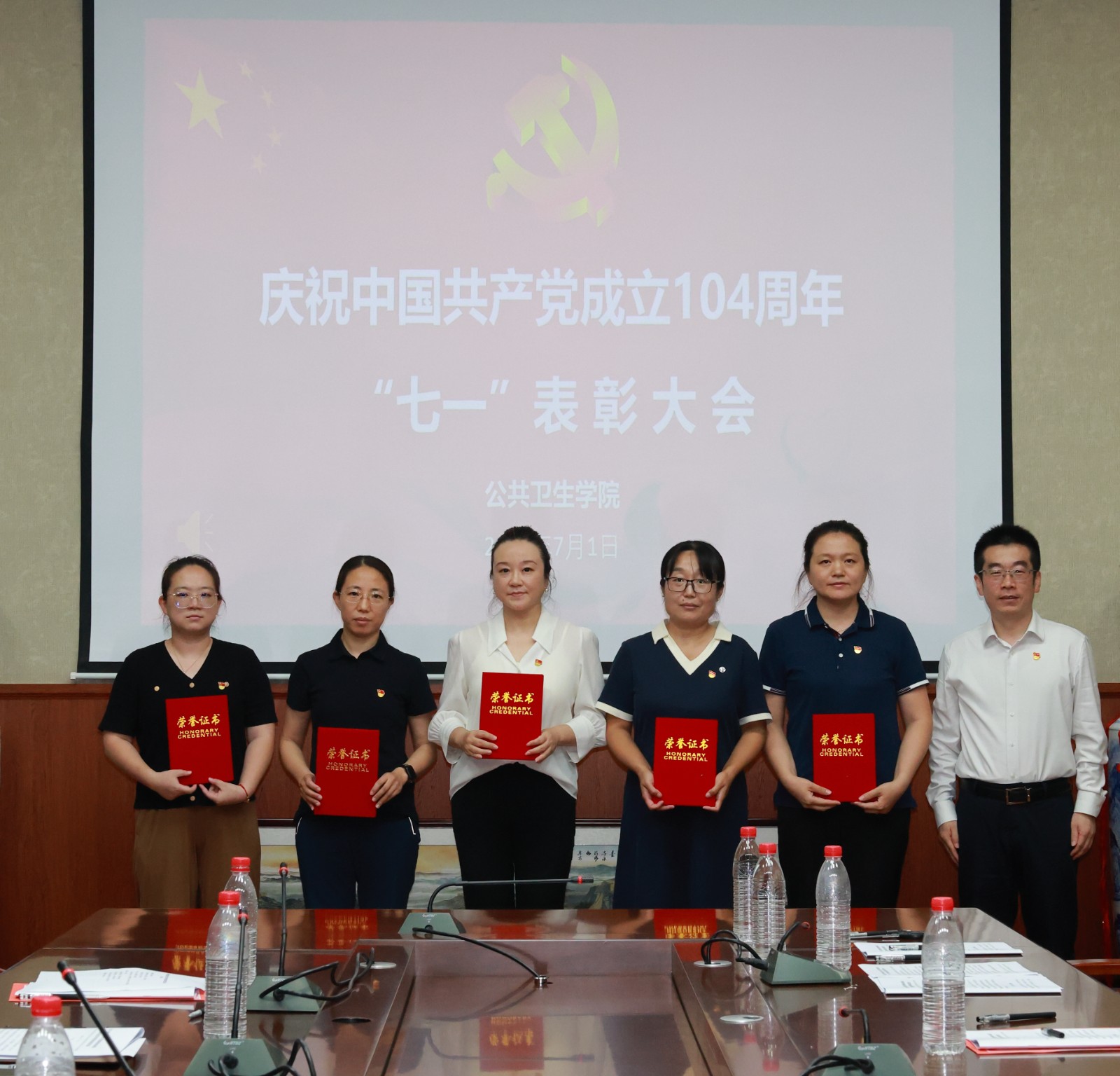 7月1日下午,我院在新医学楼119会议室召开庆祝中国共产党成立104周年暨“七一”表彰大会,公共卫生学院领导班子成员、全体党员参加了会议。会议由学院党委副书记陈凤娟主持。